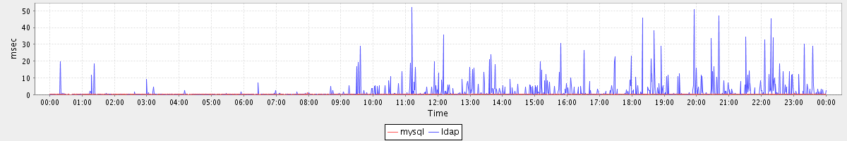 avg(mysql) = 0.19 avg(ldap) = 1.68