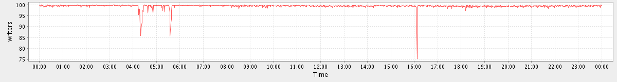 avg(user) = 7.43 avg(sys) = 1.56 avg(idle) = 87.28 avg(iowait) = 3.51 avg(nice) = 0.00 avg(irq) = 0.00 avg(softirq) = 0.20