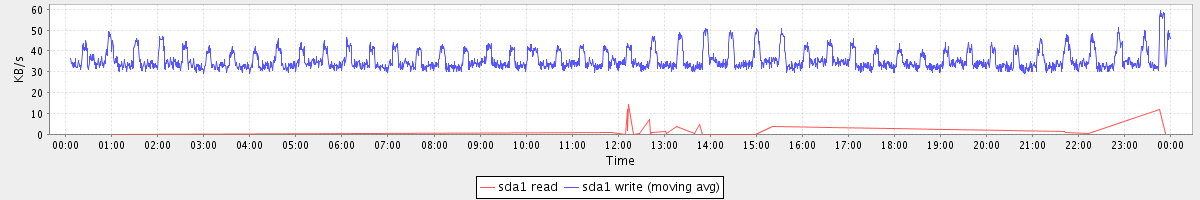 avg(sda1 read) = 0.02 avg(sda1 write) = 35.60