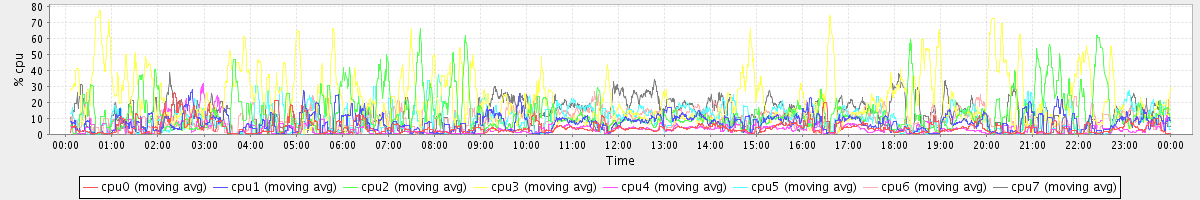 avg(cpu0) = 4.28 avg(cpu1) = 7.34 avg(cpu2) = 13.63 avg(cpu3) = 22.09 avg(cpu4) = 3.67 avg(cpu5) = 9.80 avg(cpu6) = 8.85 avg(cpu7) = 11.78