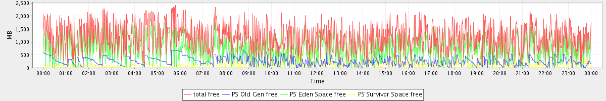 avg(total free) = 1159.41 avg(PS Old Gen free) = 260.83 avg(PS Eden Space free) = 759.44 avg(PS Survivor Space free) = 139.13