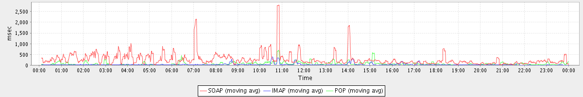Host zm01.stanford.edu: Mailboxd: Response Time by Client Protocol