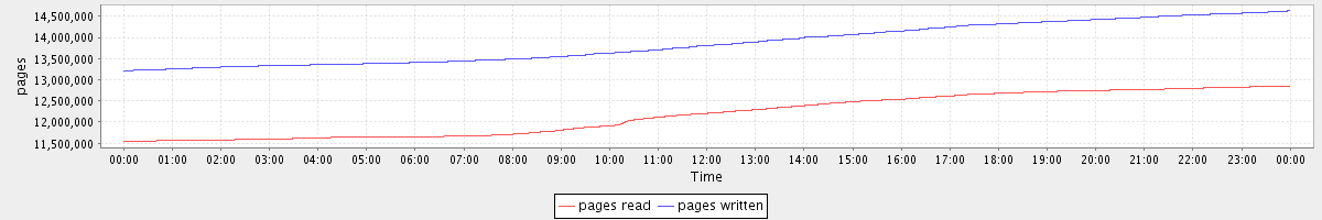 avg(pages read) = 12172840.98 avg(pages written) = 13858400.20