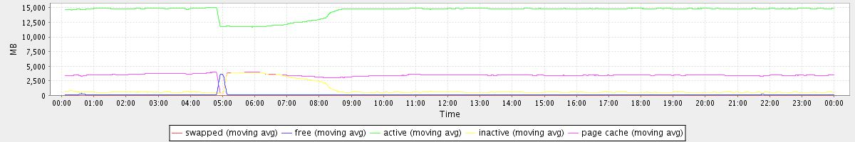 avg(swapped) = 8.32 avg(free) = 111.47 avg(active) = 14450.10 avg(inactive) = 913.74 avg(page cache) = 3461.38