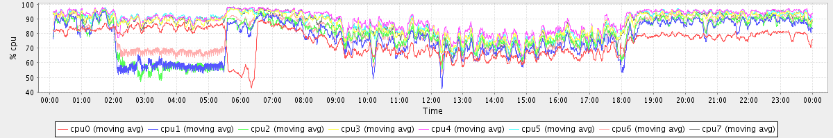 avg(cpu0) = 74.26 avg(cpu1) = 76.13 avg(cpu2) = 78.31 avg(cpu3) = 86.54 avg(cpu4) = 89.33 avg(cpu5) = 87.44 avg(cpu6) = 80.03 avg(cpu7) = 86.51