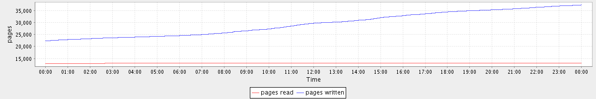 avg(pages read) = 13038.15 avg(pages written) = 29490.97