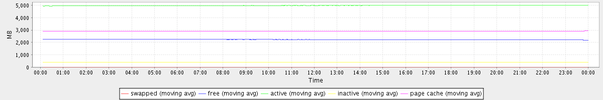 avg(swapped) = 0.20 avg(free) = 2231.60 avg(active) = 4978.63 avg(inactive) = 380.02 avg(page cache) = 2896.55
