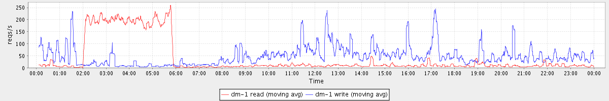 avg(dm-1 read) = 1188.13 avg(dm-1 write) = 193.25