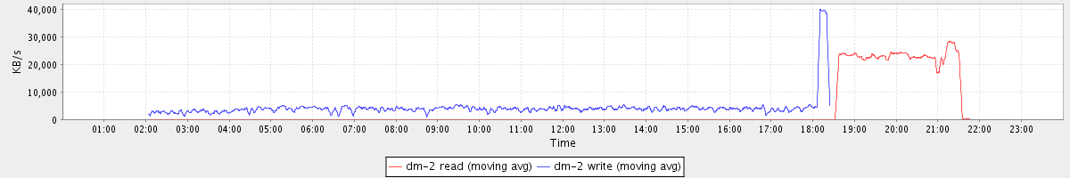 avg(dm-2 read) = 26.03 avg(dm-2 write) = 724.66