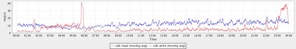 avg(sdk read) = 95.25 avg(sdk write) = 175.11