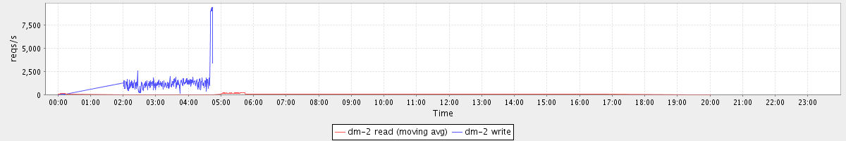 avg(dm-0 read) = 616.99 avg(dm-0 write) = 1643.63