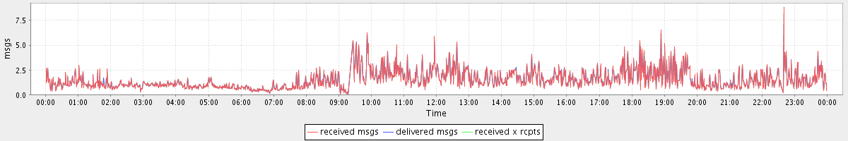 avg(received msgs) = 1.51 avg(delivered msgs) = 1.52 avg(received x rcpts) = 1.52