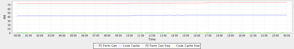 avg(PS Perm Gen) = 74.24 avg(Code Cache) = 43.55 avg(PS Perm Gen free) = 0.32 avg(Code Cache free) = 0.34