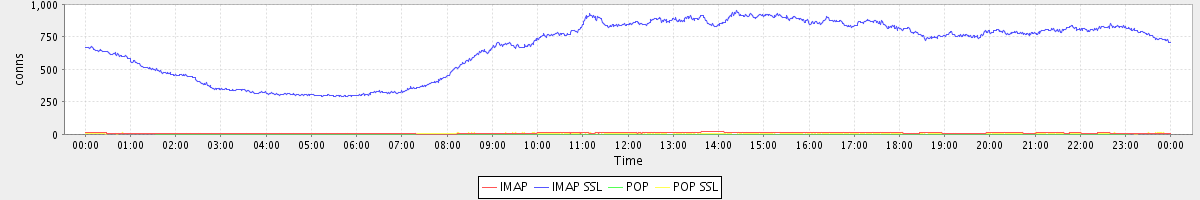 Host zm02.stanford.edu: Mailboxd: Active Connections by Client Protocol