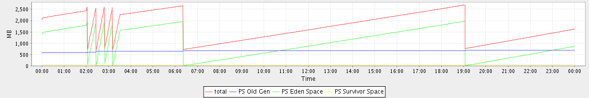 avg(total free) = 4589.40 avg(PS Old Gen free) = 3608.37 avg(PS Eden Space free) = 954.69 avg(PS Survivor Space free) = 26.34