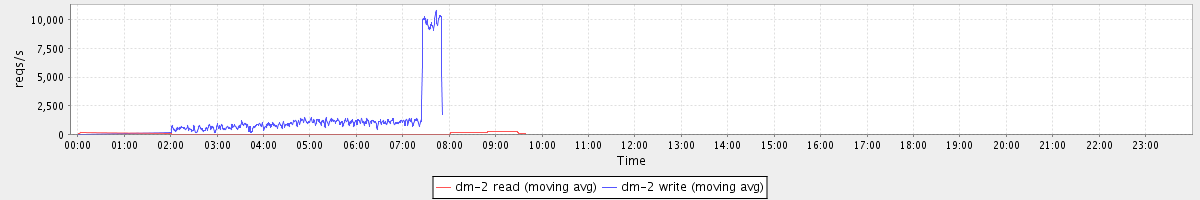 avg(dm-2 read) = 13.46 avg(dm-2 write) = 370.22