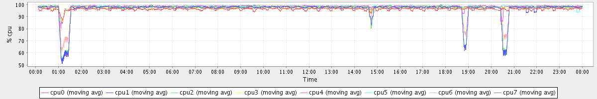 avg(cpu0) = 0.01 avg(cpu1) = 0.01 avg(cpu2) = 0.01 avg(cpu3) = 0.00 avg(cpu4) = 0.00 avg(cpu5) = 0.00 avg(cpu6) = 0.00 avg(cpu7) = 0.00
