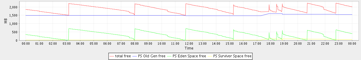 avg(total free) = 1881.37 avg(PS Old Gen free) = 1503.51 avg(PS Eden Space free) = 346.30 avg(PS Survivor Space free) = 31.55