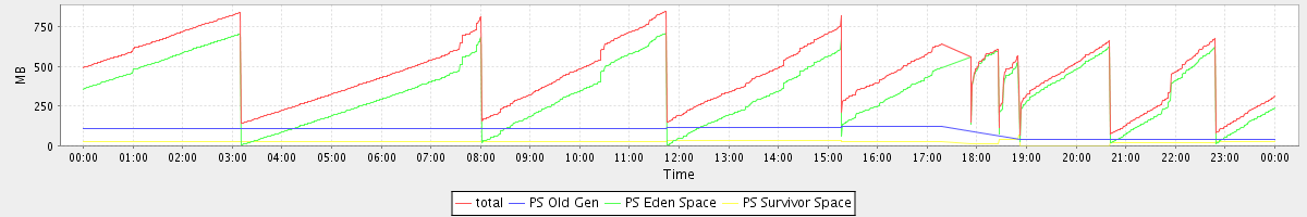 avg(total) = 454.72 avg(PS Old Gen) = 91.17 avg(PS Eden Space) = 339.09 avg(PS Survivor Space) = 24.46