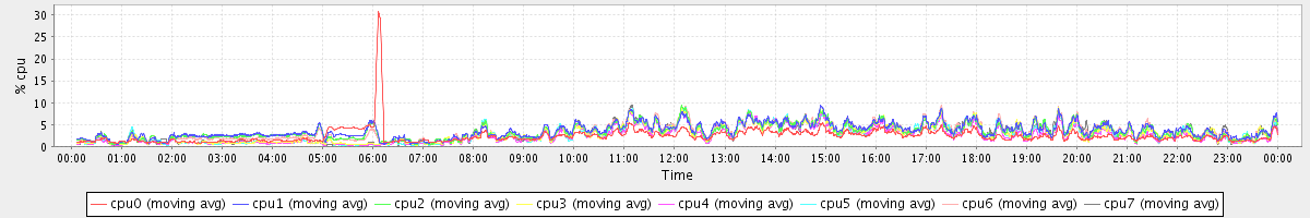 avg(cpu0) = 0.11 avg(cpu1) = 0.05 avg(cpu2) = 0.04 avg(cpu3) = 0.00 avg(cpu4) = 0.00 avg(cpu5) = 0.00 avg(cpu6) = 0.03 avg(cpu7) = 0.00