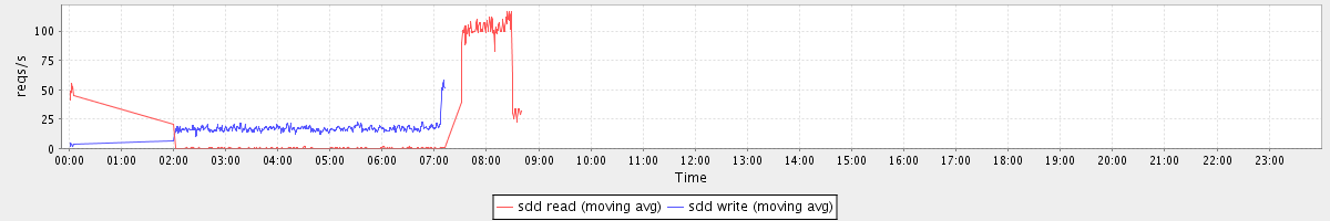 avg(sda read) = 28.07 avg(sda write) = 43.43