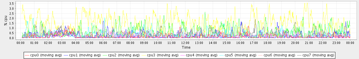 avg(cpu0) = 0.16 avg(cpu1) = 0.28 avg(cpu2) = 0.63 avg(cpu3) = 1.45 avg(cpu4) = 0.13 avg(cpu5) = 0.37 avg(cpu6) = 0.29 avg(cpu7) = 0.32