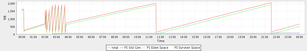 avg(total) = 1074.41 avg(PS Old Gen) = 59.47 avg(PS Eden Space) = 957.50 avg(PS Survivor Space) = 57.44