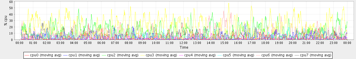 avg(cpu0) = 5.37 avg(cpu1) = 6.13 avg(cpu2) = 11.53 avg(cpu3) = 16.90 avg(cpu4) = 5.04 avg(cpu5) = 5.63 avg(cpu6) = 9.00 avg(cpu7) = 6.11