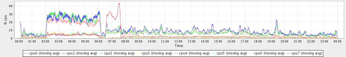 avg(cpu0) = 0.09 avg(cpu1) = 0.05 avg(cpu2) = 0.04 avg(cpu3) = 0.00 avg(cpu4) = 0.00 avg(cpu5) = 0.00 avg(cpu6) = 0.03 avg(cpu7) = 0.00