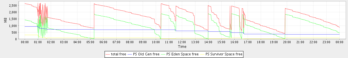avg(total free) = 1624.32 avg(PS Old Gen free) = 575.73 avg(PS Eden Space free) = 968.45 avg(PS Survivor Space free) = 80.14