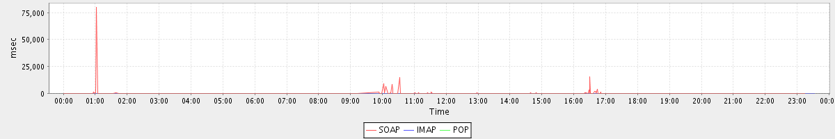 Host zm04.stanford.edu: Mailboxd: Response Time by Client Protocol