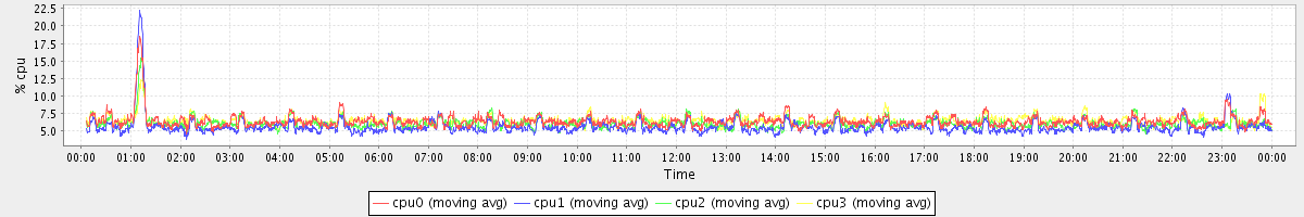 avg(cpu0) = 0.16 avg(cpu1) = 0.18 avg(cpu2) = 0.08 avg(cpu3) = 0.05