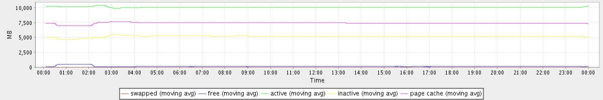 avg(swapped) = 0.60 avg(free) = 147.35 avg(active) = 10095.89 avg(inactive) = 5194.50 avg(page cache) = 7417.44