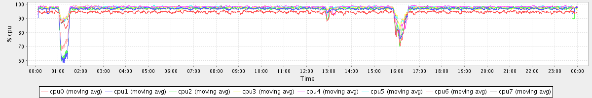 avg(cpu0) = 94.10 avg(cpu1) = 95.98 avg(cpu2) = 96.15 avg(cpu3) = 96.96 avg(cpu4) = 97.83 avg(cpu5) = 97.66 avg(cpu6) = 97.27 avg(cpu7) = 97.32