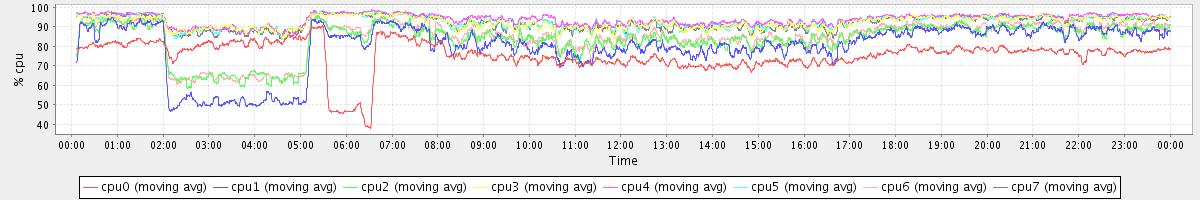 avg(cpu0) = 75.58 avg(cpu1) = 79.80 avg(cpu2) = 83.67 avg(cpu3) = 92.25 avg(cpu4) = 93.84 avg(cpu5) = 92.68 avg(cpu6) = 84.62 avg(cpu7) = 92.15