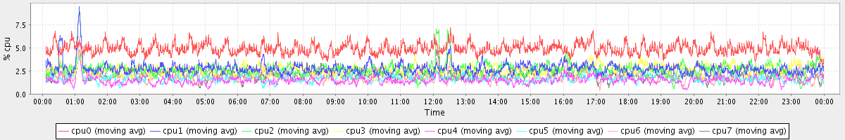 avg(cpu0) = 0.04 avg(cpu1) = 0.20 avg(cpu2) = 0.21 avg(cpu3) = 0.04 avg(cpu4) = 0.07 avg(cpu5) = 0.04 avg(cpu6) = 0.13 avg(cpu7) = 0.04
