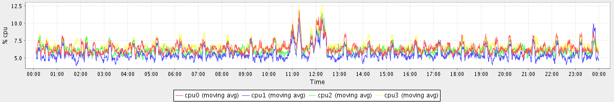 avg(cpu0) = 6.43 avg(cpu1) = 5.59 avg(cpu2) = 6.18 avg(cpu3) = 6.64