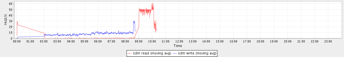avg(sda read) = 1.46 avg(sda write) = 3.05
