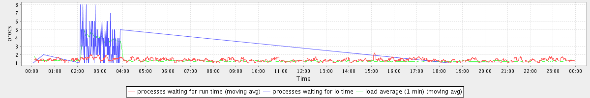 avg(processes waiting for run time) = 1.36 avg(processes waiting for io time) = 0.20 avg(load average (1 min)) = 1.44