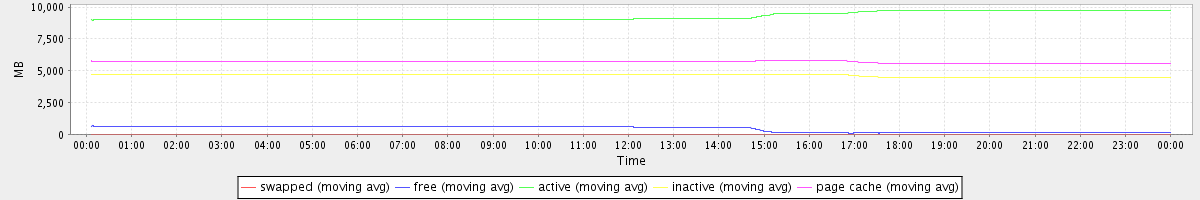 avg(swapped) = 0.22 avg(free) = 424.27 avg(active) = 9278.52 avg(inactive) = 4615.08 avg(page cache) = 5693.61