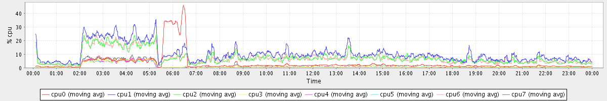 avg(cpu0) = 1.33 avg(cpu1) = 0.32 avg(cpu2) = 0.43 avg(cpu3) = 0.26 avg(cpu4) = 0.24 avg(cpu5) = 0.22 avg(cpu6) = 0.28 avg(cpu7) = 0.23