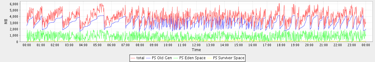 avg(total) = 3913.55 avg(PS Old Gen) = 2983.25 avg(PS Eden Space) = 840.98 avg(PS Survivor Space) = 89.32