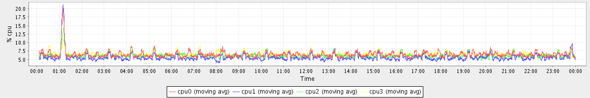 avg(cpu0) = 0.15 avg(cpu1) = 0.17 avg(cpu2) = 0.06 avg(cpu3) = 0.05