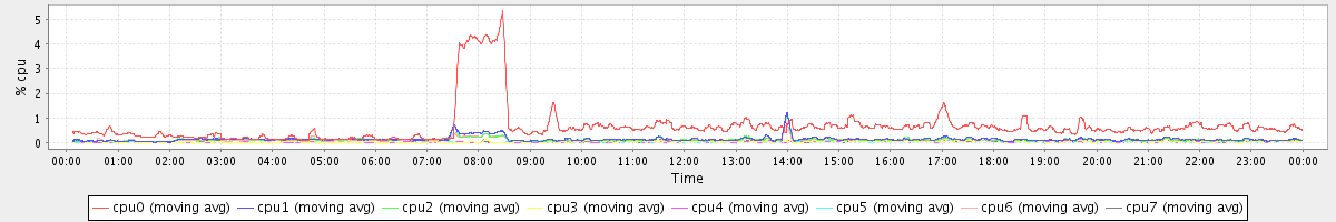 avg(cpu0) = 0.65 avg(cpu1) = 0.14 avg(cpu2) = 0.12 avg(cpu3) = 0.03 avg(cpu4) = 0.03 avg(cpu5) = 0.03 avg(cpu6) = 0.10 avg(cpu7) = 0.03