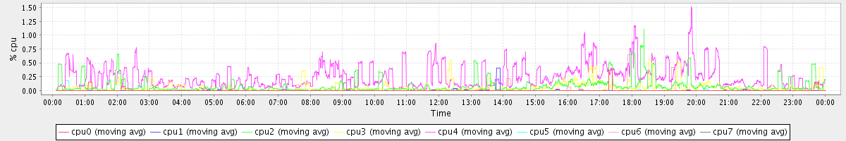 avg(cpu0) = 0.05 avg(cpu1) = 0.00 avg(cpu2) = 0.00 avg(cpu3) = 0.00 avg(cpu4) = 0.01 avg(cpu5) = 0.00 avg(cpu6) = 0.00 avg(cpu7) = 0.00
