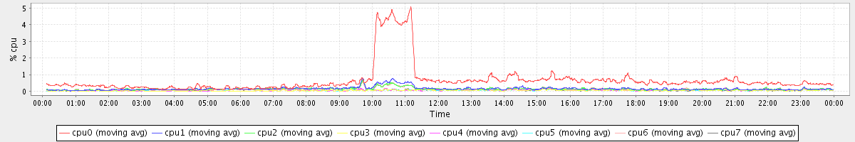 avg(cpu0) = 0.08 avg(cpu1) = 0.05 avg(cpu2) = 0.04 avg(cpu3) = 0.00 avg(cpu4) = 0.00 avg(cpu5) = 0.00 avg(cpu6) = 0.03 avg(cpu7) = 0.00