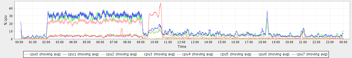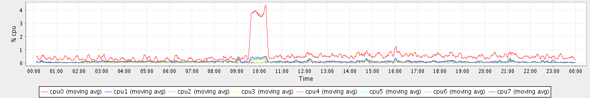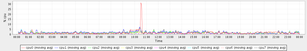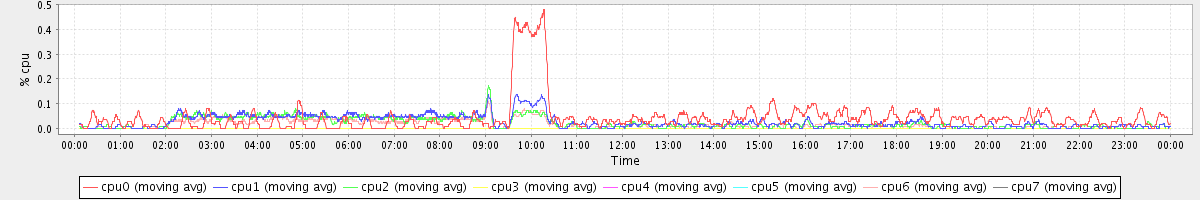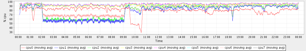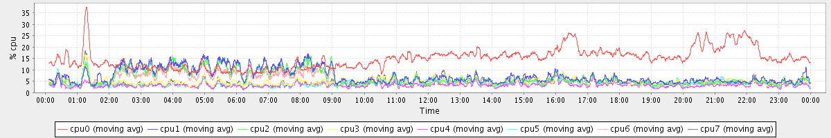 avg(cpu0) = 0.55 avg(cpu1) = 0.11 avg(cpu2) = 0.09 avg(cpu3) = 0.04 avg(cpu4) = 0.03 avg(cpu5) = 0.03 avg(cpu6) = 0.07 avg(cpu7) = 0.04
