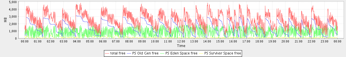 avg(total free) = 2524.31 avg(PS Old Gen free) = 1509.60 avg(PS Eden Space free) = 900.20 avg(PS Survivor Space free) = 114.51