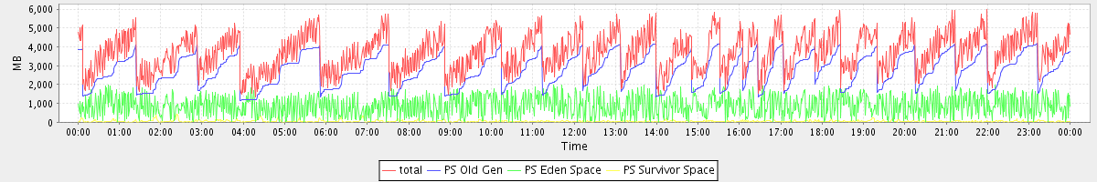 avg(total) = 3703.63 avg(PS Old Gen) = 2762.40 avg(PS Eden Space) = 889.63 avg(PS Survivor Space) = 51.61