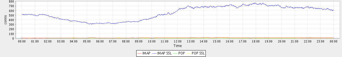 Host zm02.stanford.edu: Mailboxd: Active Connections by Client Protocol